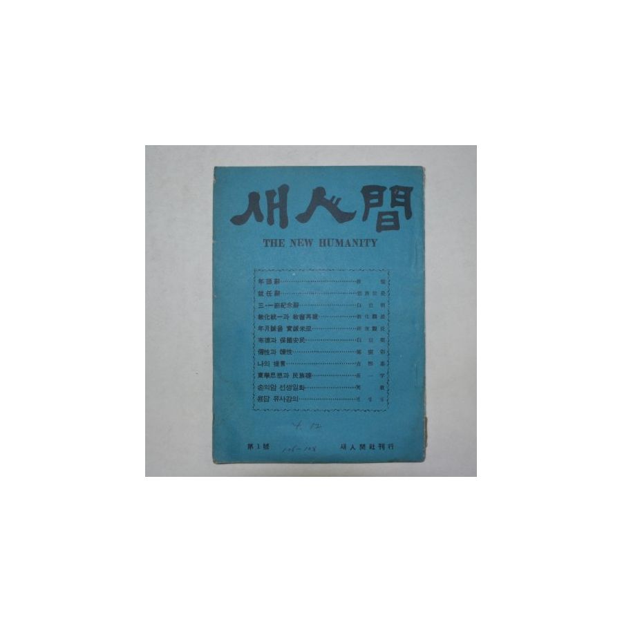 1965년 새인간(새人間) 제1호 창간호 > 근대도서