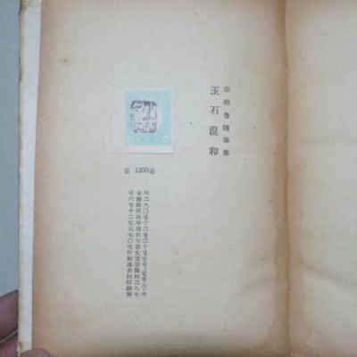 1957년초판 이상로(李相魯)수필집 옥석혼화(玉石混和) 상태좋음 보46-7-1