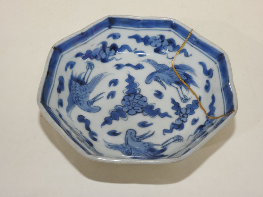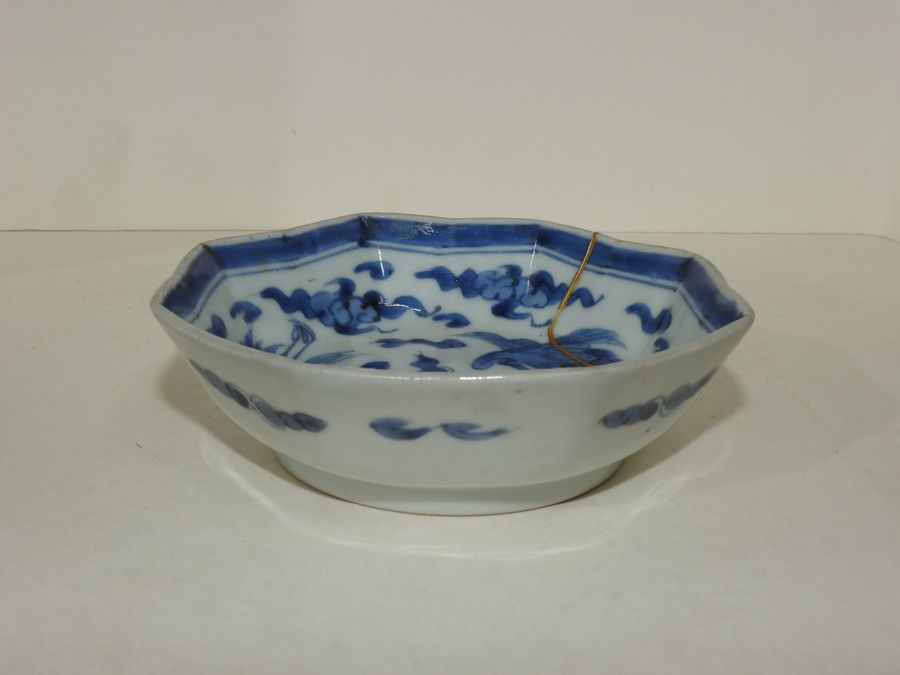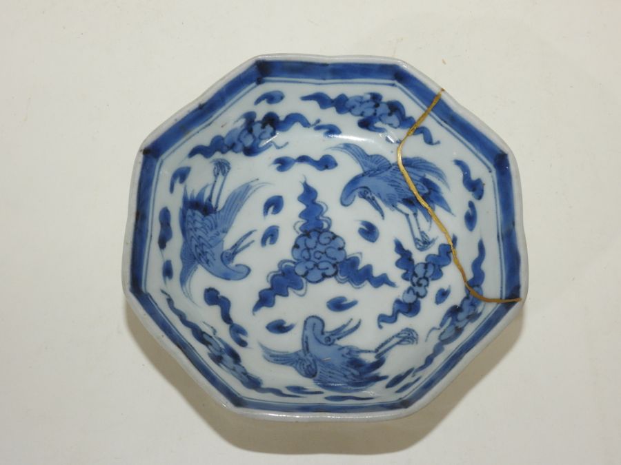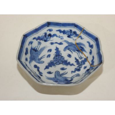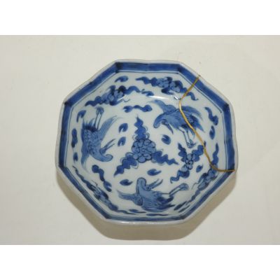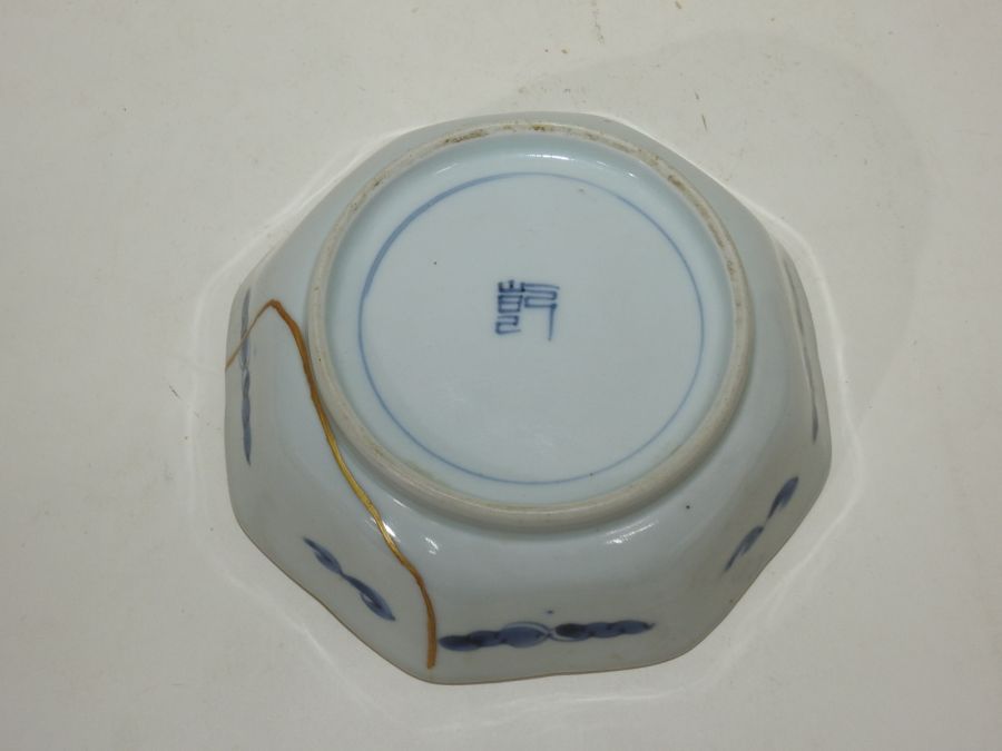 100년이상된 양촌이마리 청화백자 학문 팔각완 > 일본미술품