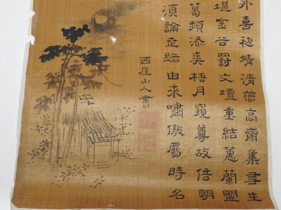 • 102-중국 베바닥에 그린 대형크기의 산수화 족자