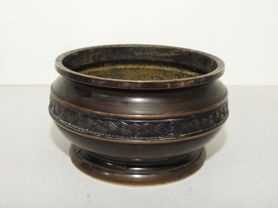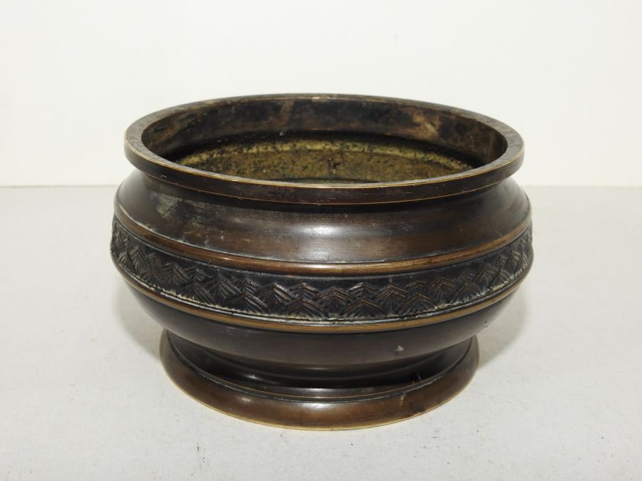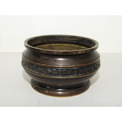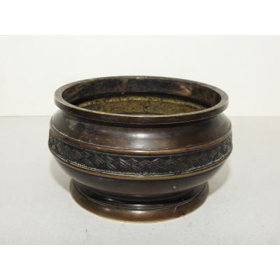 묵직한 청동으로된 화문이 조각된 향로 > 일본미술품