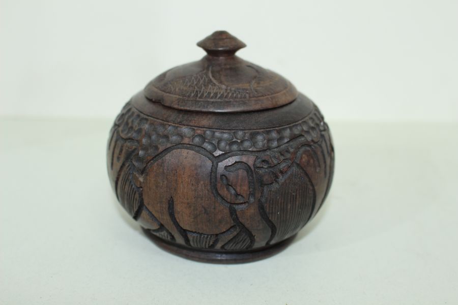 외국산 원목나무에 코끼리가 조각된 차호 > 일본미술품
