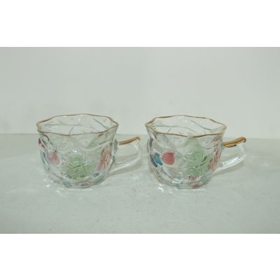 유리에 금채화문된 커피잔 2점 > 일본미술품