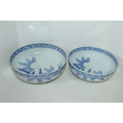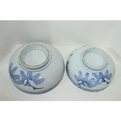 100년이상된 청화백자추상화문 대완 2점셋트 > 일본미술품