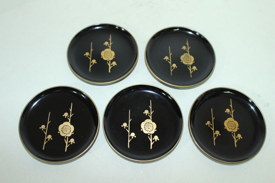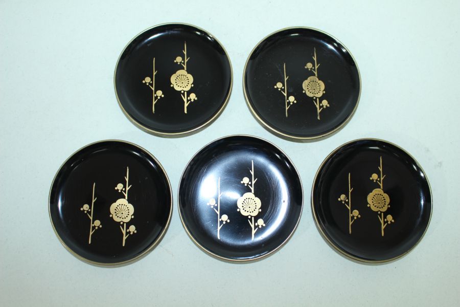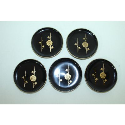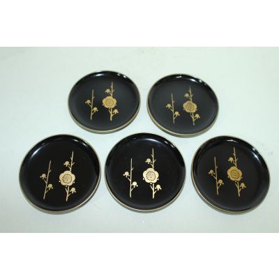 나무에 금채화문된 차탁 5점셋트 > 일본미술품