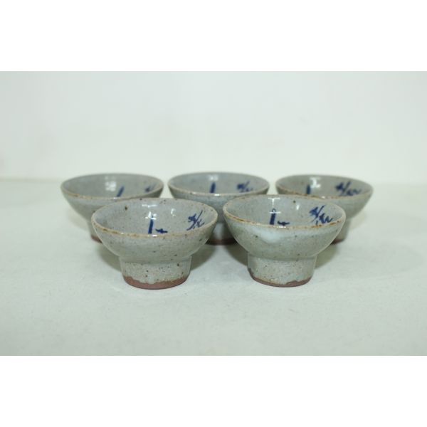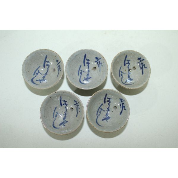 희귀청화백자문자문 영원히 차지않는 잔 5점셋트 > 일본미술품