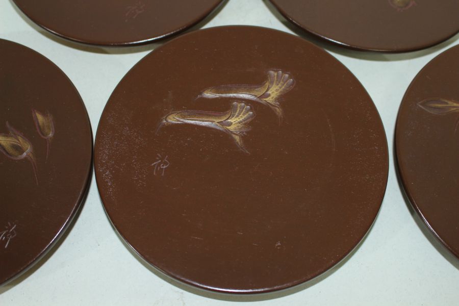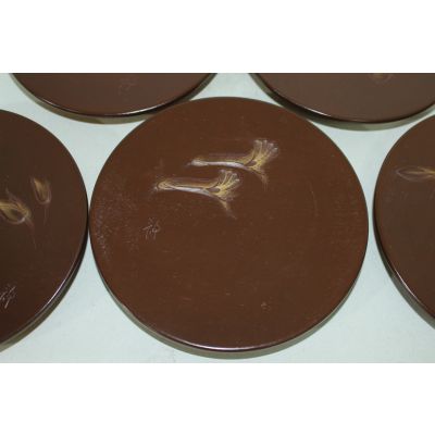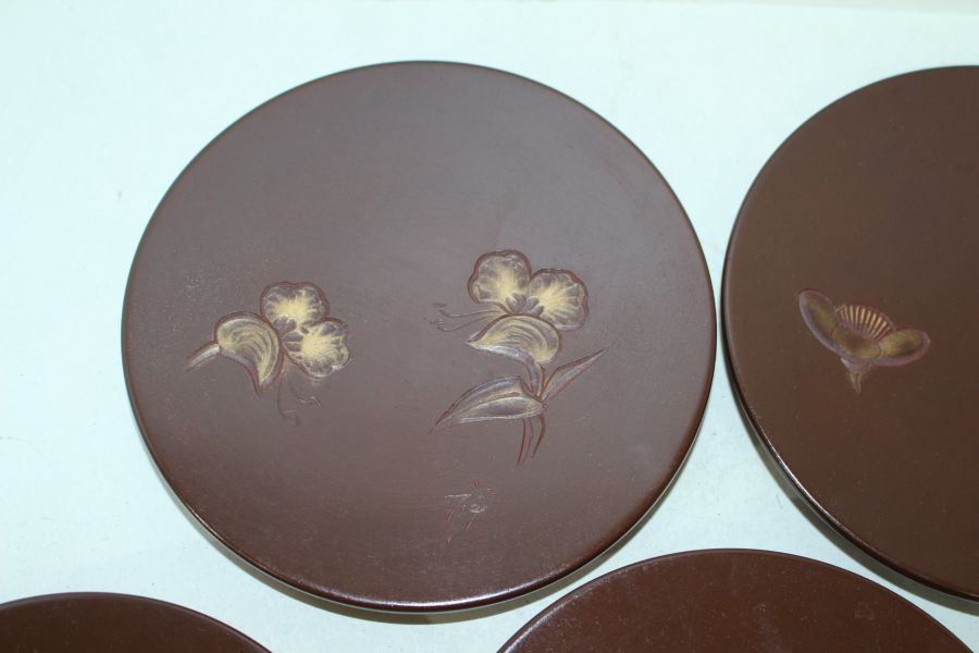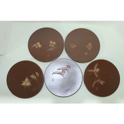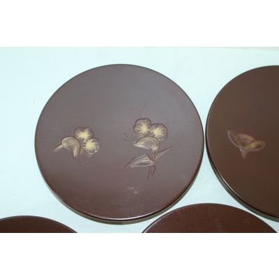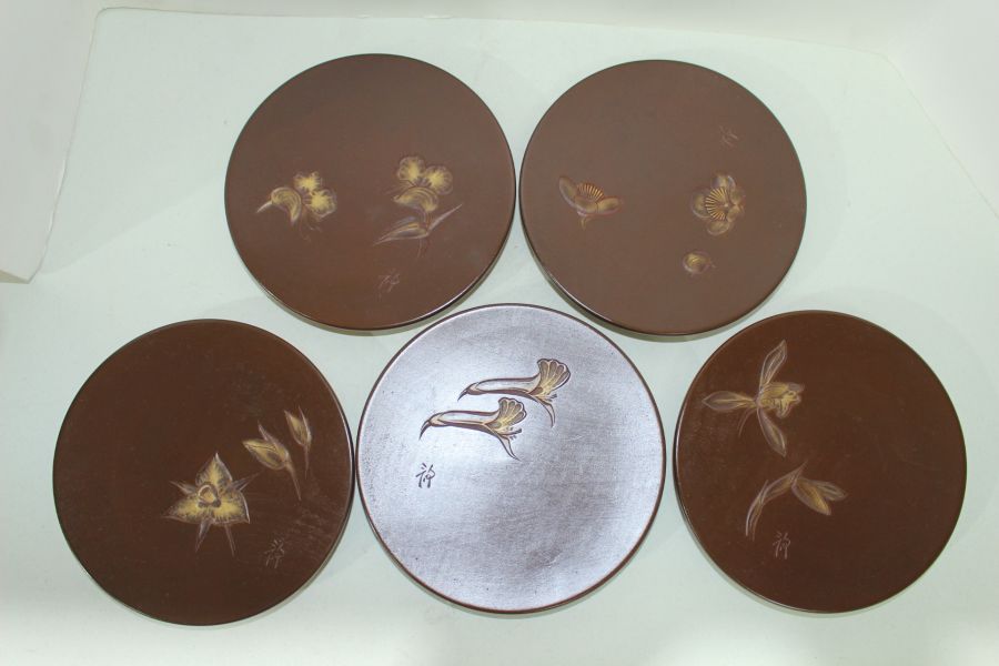 원목나무에 화문이 조각된 차반 5점 > 일본미술품