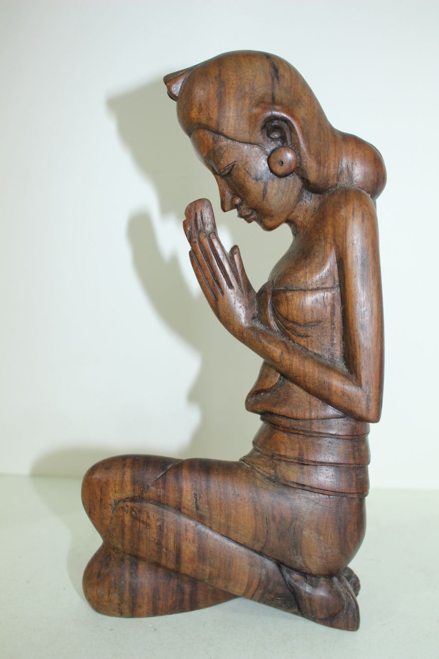 원목나무를 통으로 조각한 기도하는 여인 조각상 > 일본미술품
