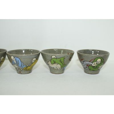 연대가좋은 청자 나한 잔 5점셋트 > 일본미술품