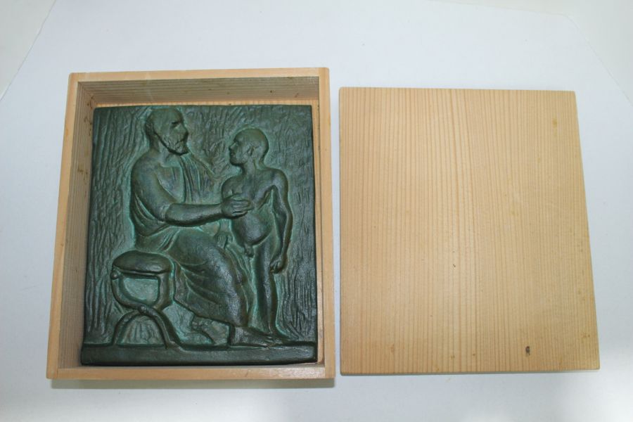 묵직한 무쇠로된 부조 인물 조각판 > 일본미술품