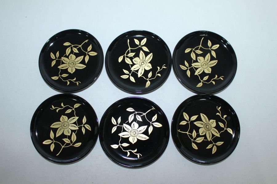 명품-나무에 금채화문된 차탁6점과 차탁합 > 일본미술품