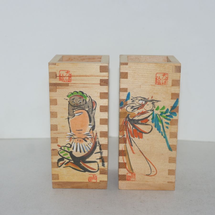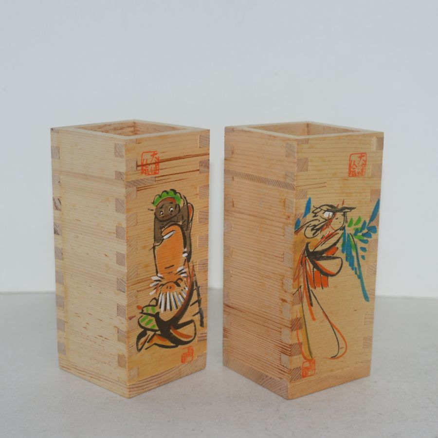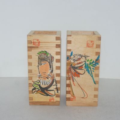 나무에 사귀물림이 있는 나무사각주병 2점 > 일본미술품