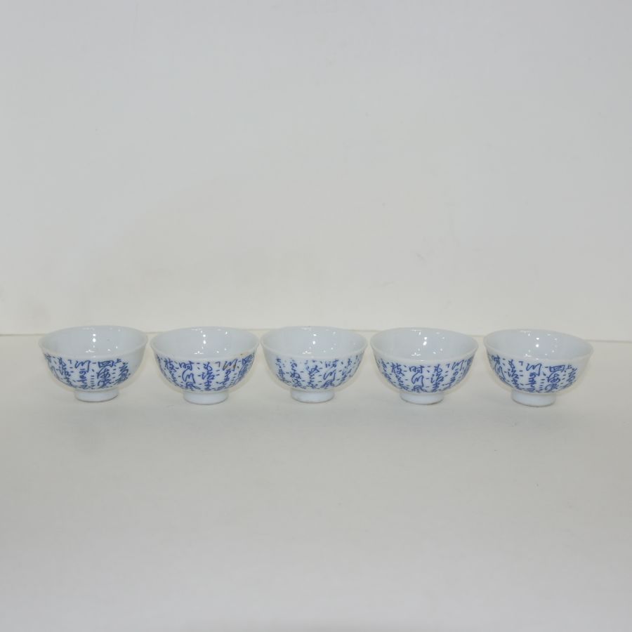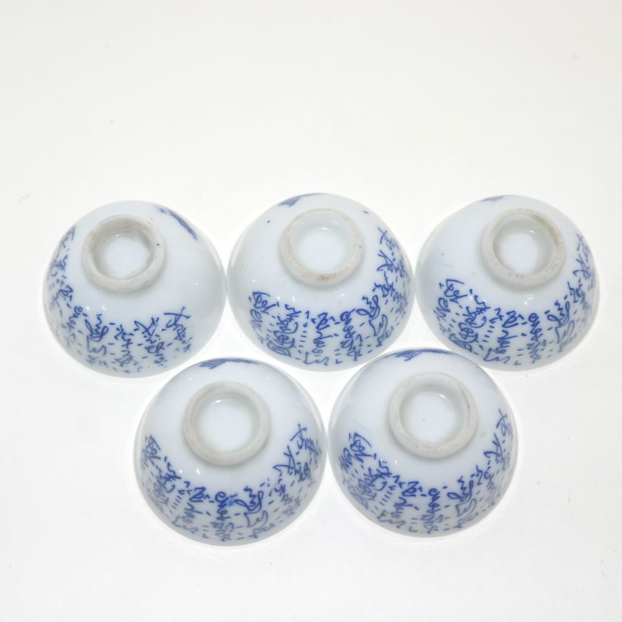 연대가좋은 청화백자 시문잔 5점셋트 > 일본미술품