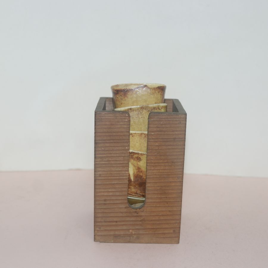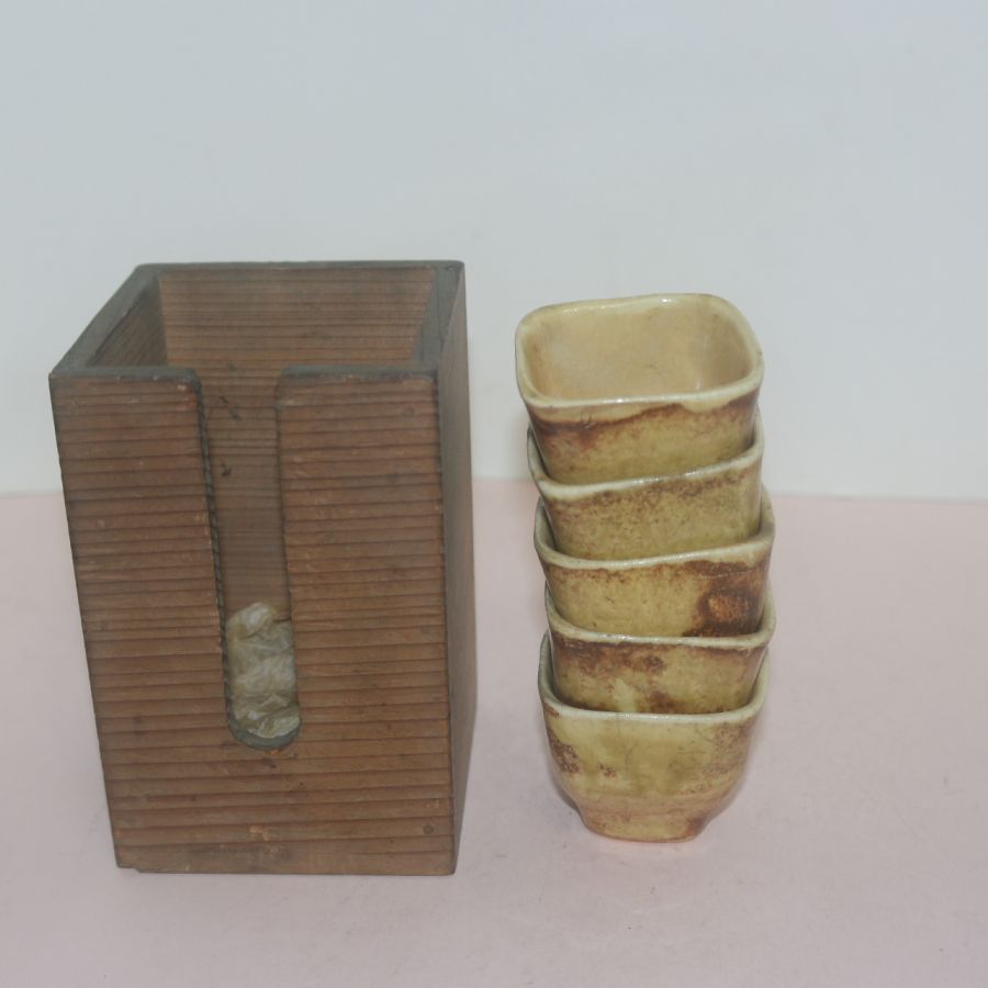 • 연대가좋은 분청자 사각잔 5점 과 나무함