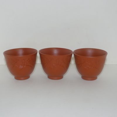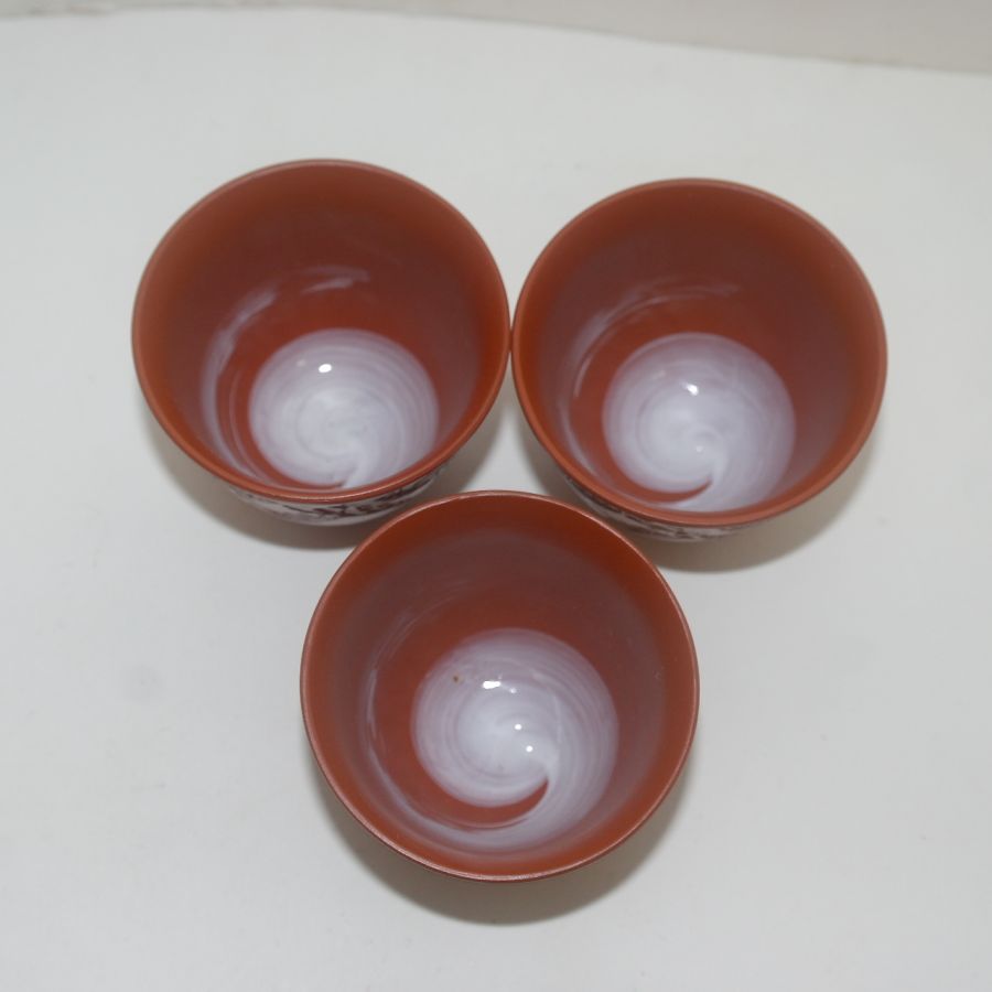 자사도자기 음각화문 잔 3점셋트 > 일본미술품