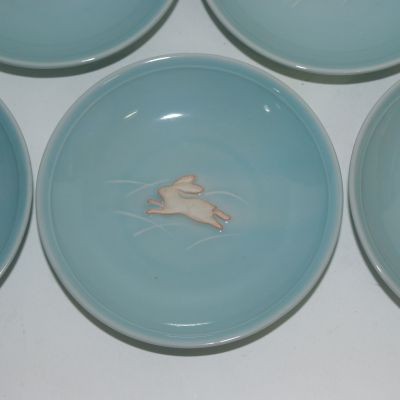 • 순청자 양각토끼문 완 5점