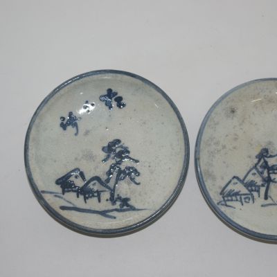 • 연대가좋은 청자 청화산수문 완 2점