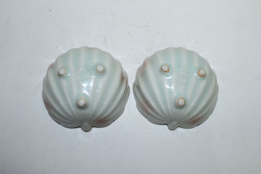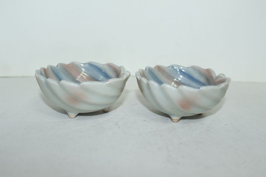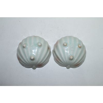 채색청자 복숭아모양 화형완 2점 > 일본미술품