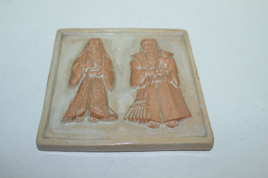 청자 도자기 인물문 양각 부조판 > 일본미술품