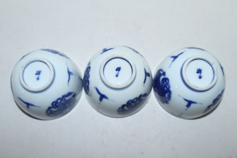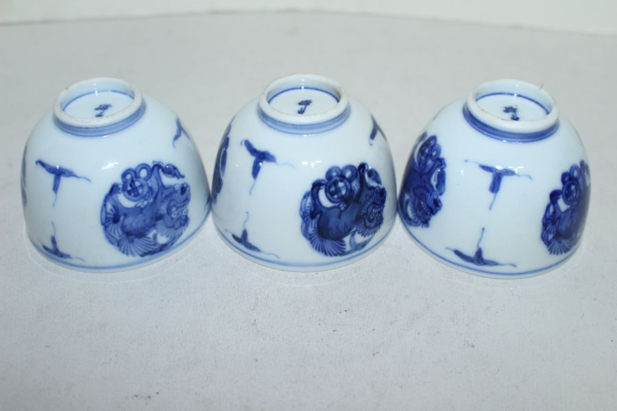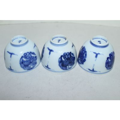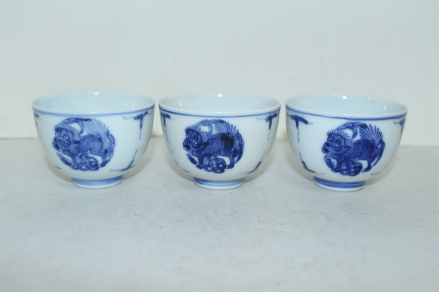 연대가좋은 고이마리 청화백자해태용문 잔 3점 > 일본미술품