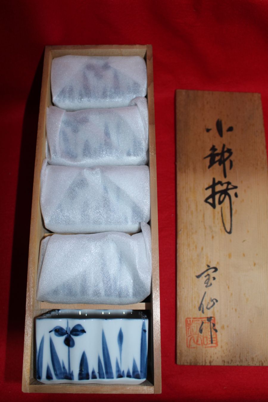 청화백자 화문 사각완 5점셋트 > 일본미술품