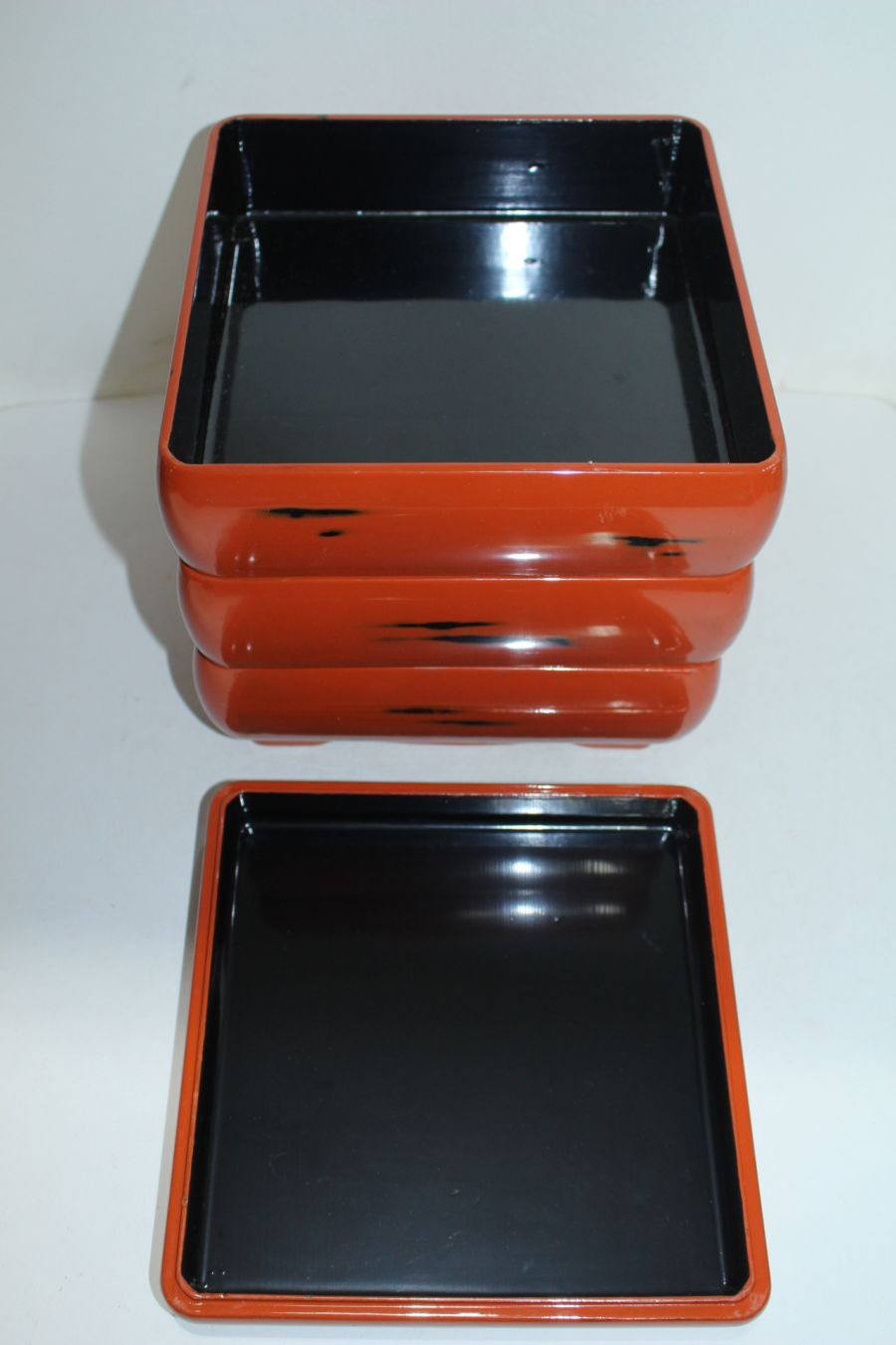 나무에 옷칠이된 사각 삼단합 > 일본미술품