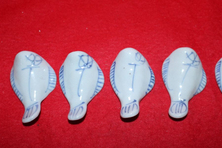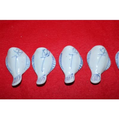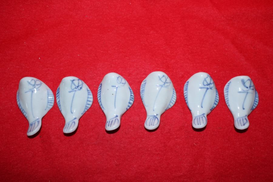 청화백자 물고기형 저분받침 6점 > 일본미술품
