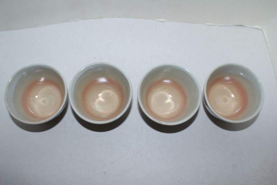 청자 홍화빛 굽따인잔 4점 > 일본미술품