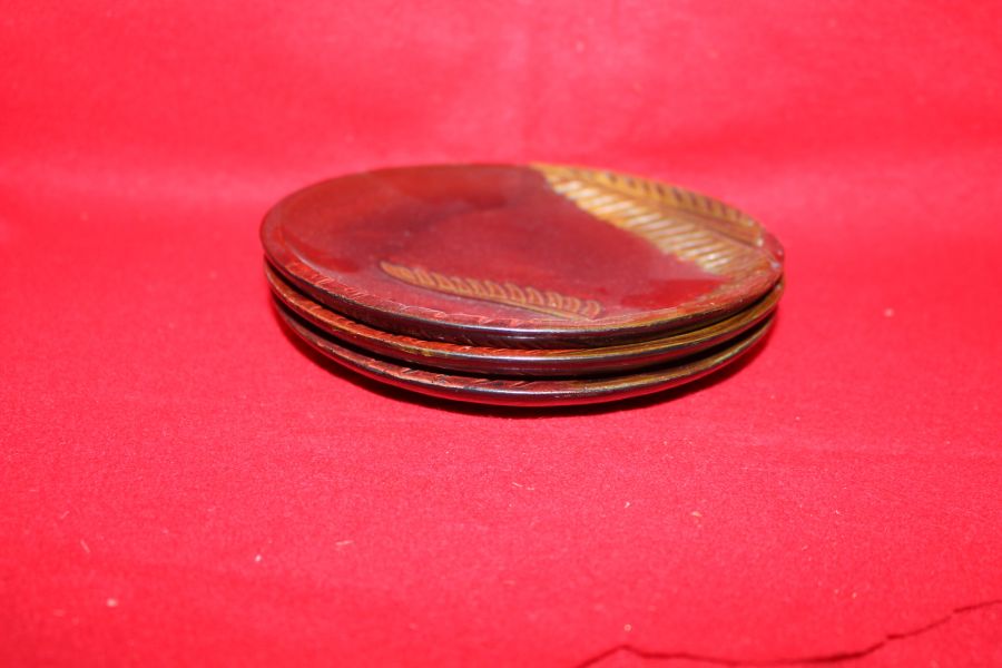 • 연대가좋은 나무에 화문이조각된 차반 3점