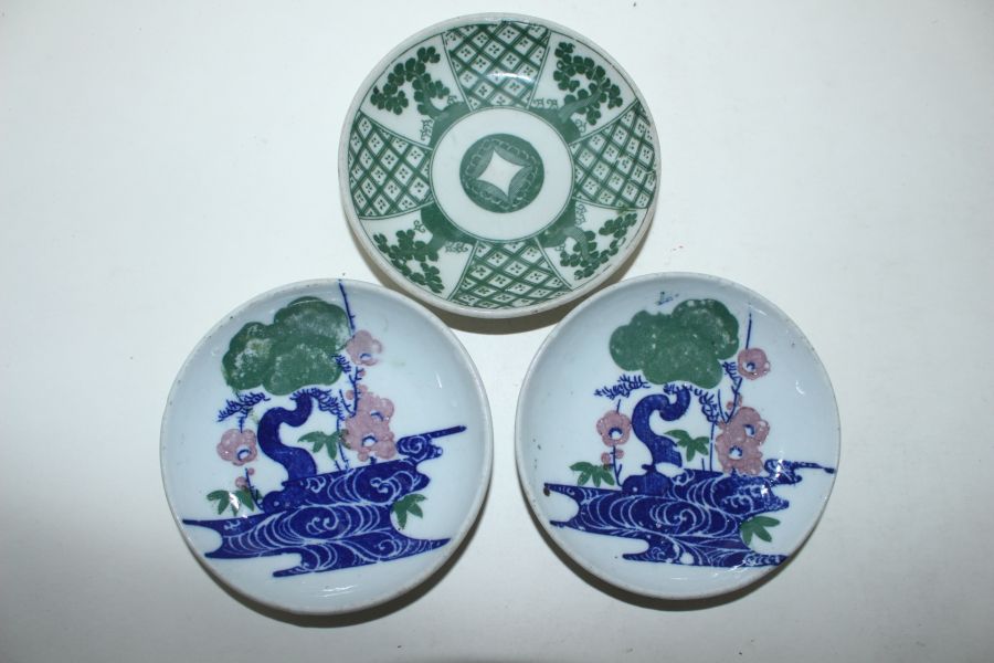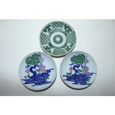 연대가좋은 외사기 청화백자화문완 3점 > 일본미술품