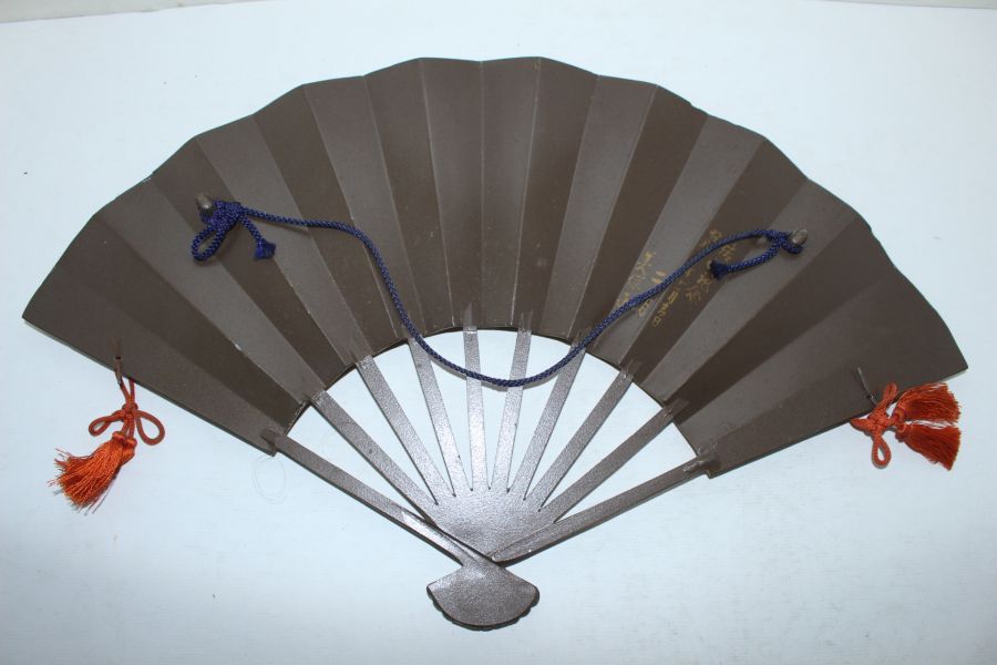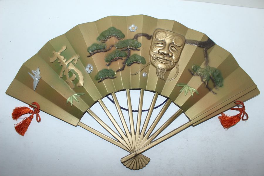 묵직한 금속재질로된 부채모양 부조판 > 일본미술품