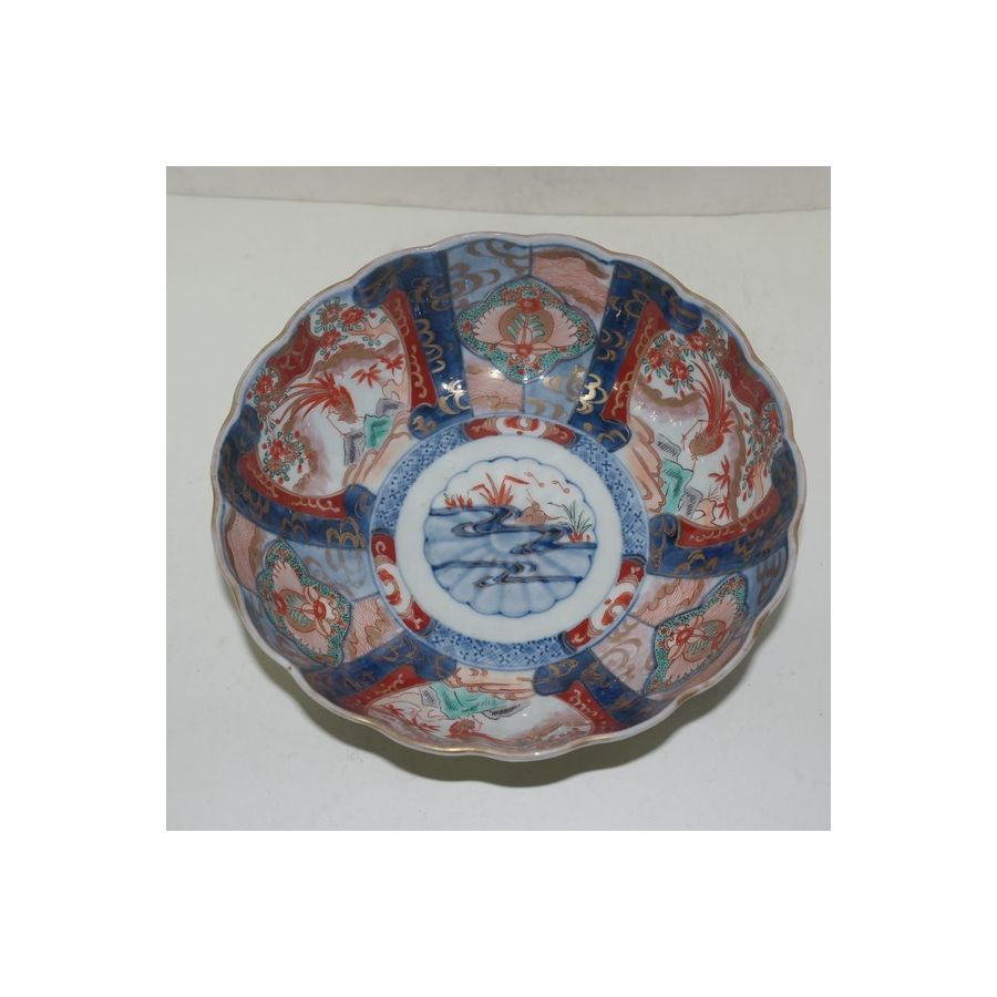 • 고이마리 청화백자진사금채화문화형완