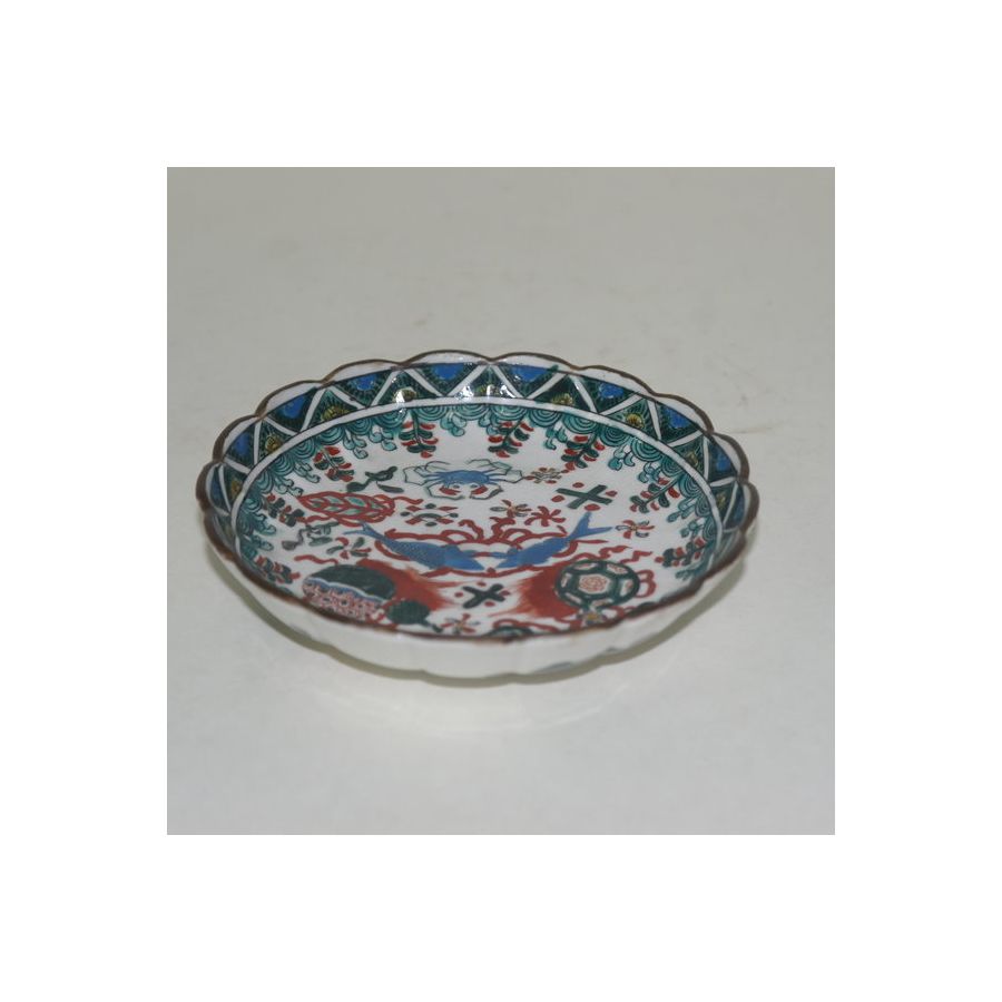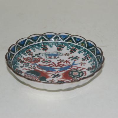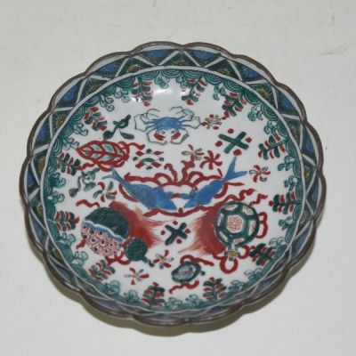 • 100년이상된 고이마리 청화백자 진사금채산수문 개완