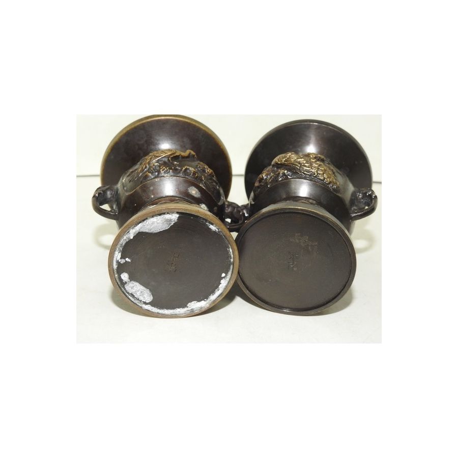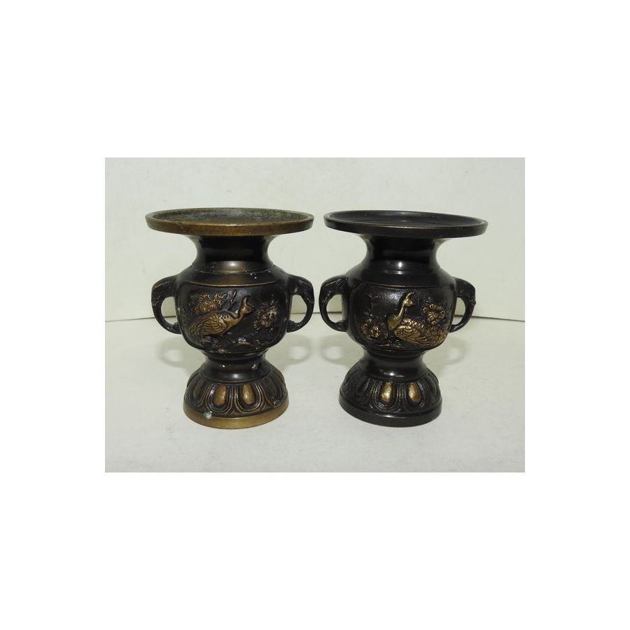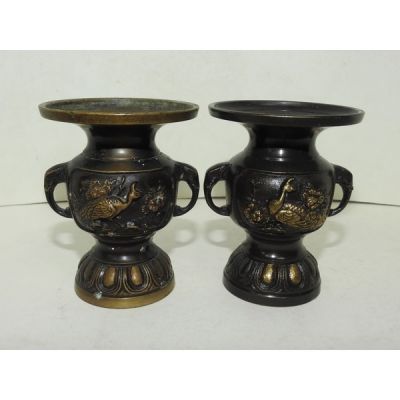 묵직한 청동으로된 양각조화문 화병2점셋트 > 일본미술품
