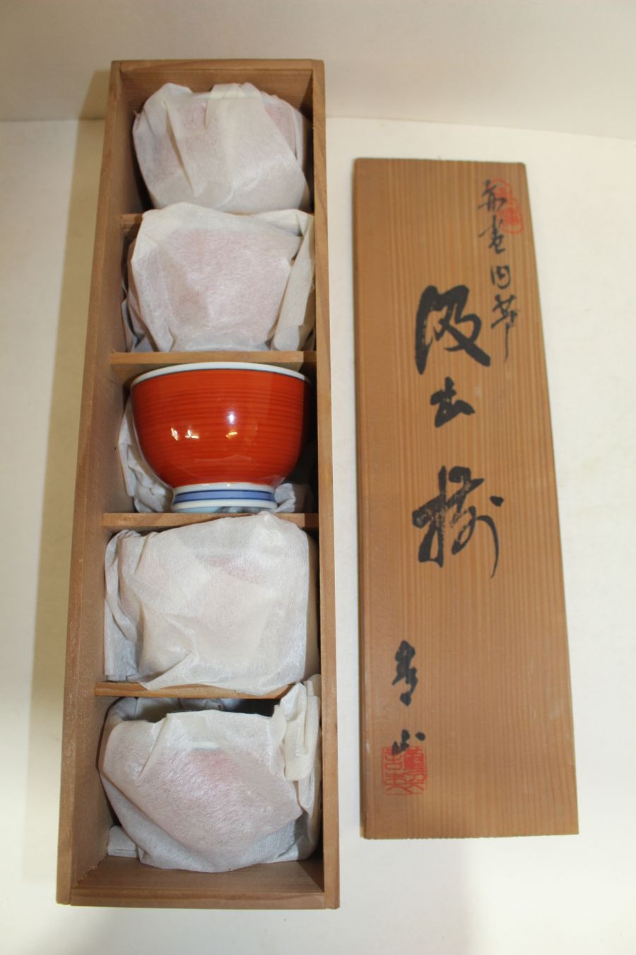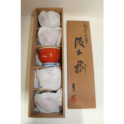 진사백자 청화화문 잔 5점셋트 > 일본미술품