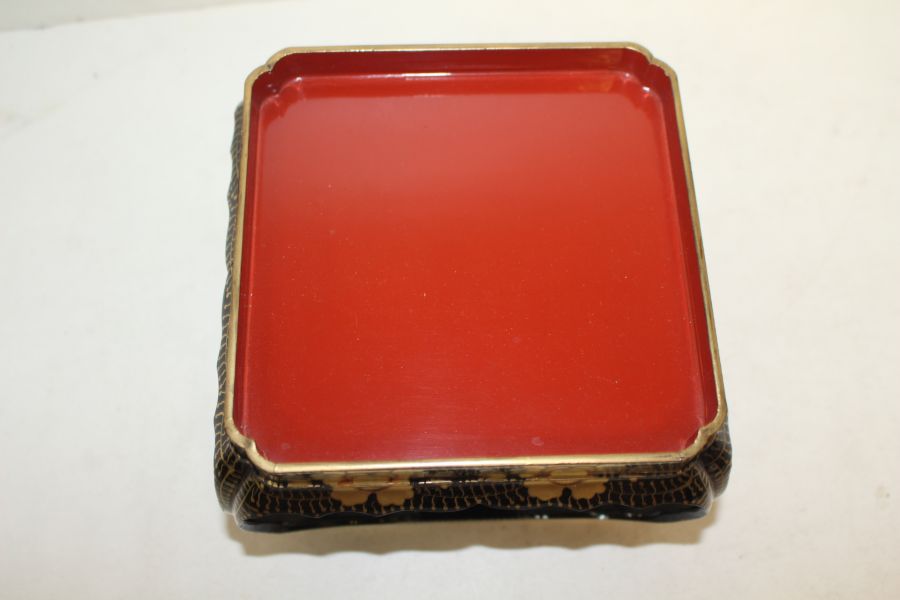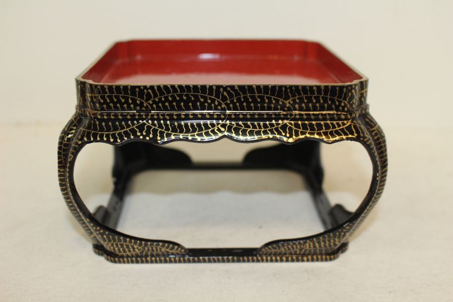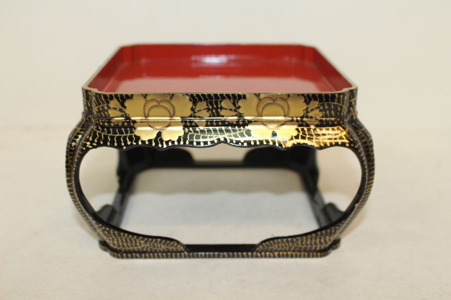 나무에 옷칠후 금채화문된 사각차반 > 일본미술품