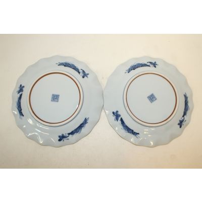 • 이마리 청화백자 조화문 화형완 2점