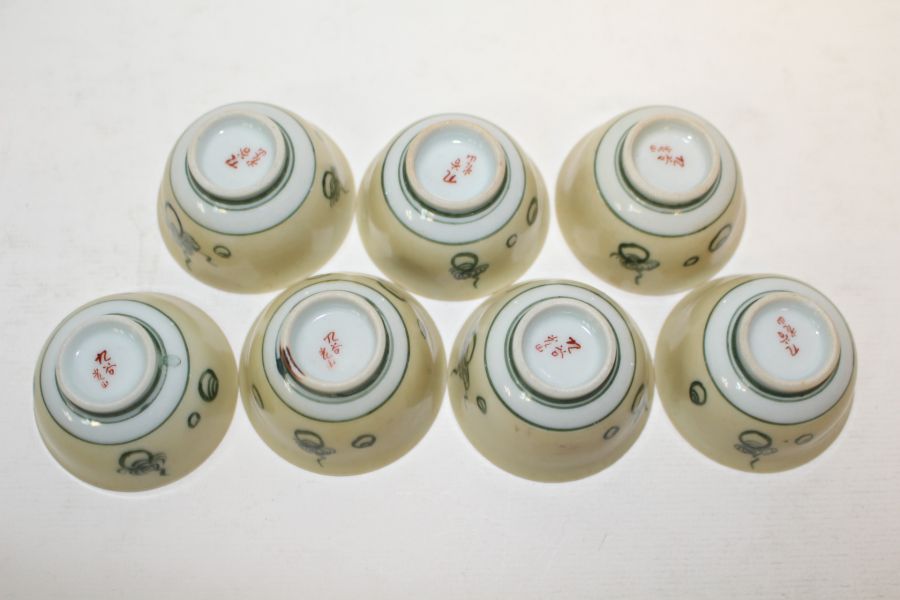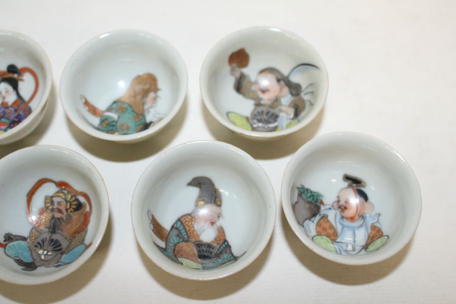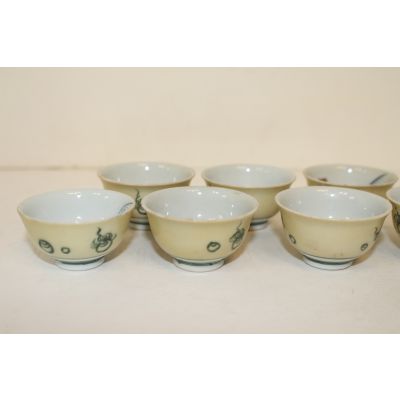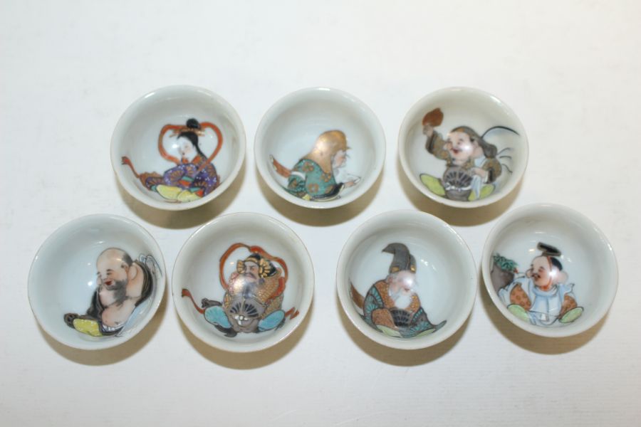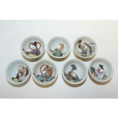 연대가좋은 구다니 철화금채복신문잔 7점 > 일본미술품