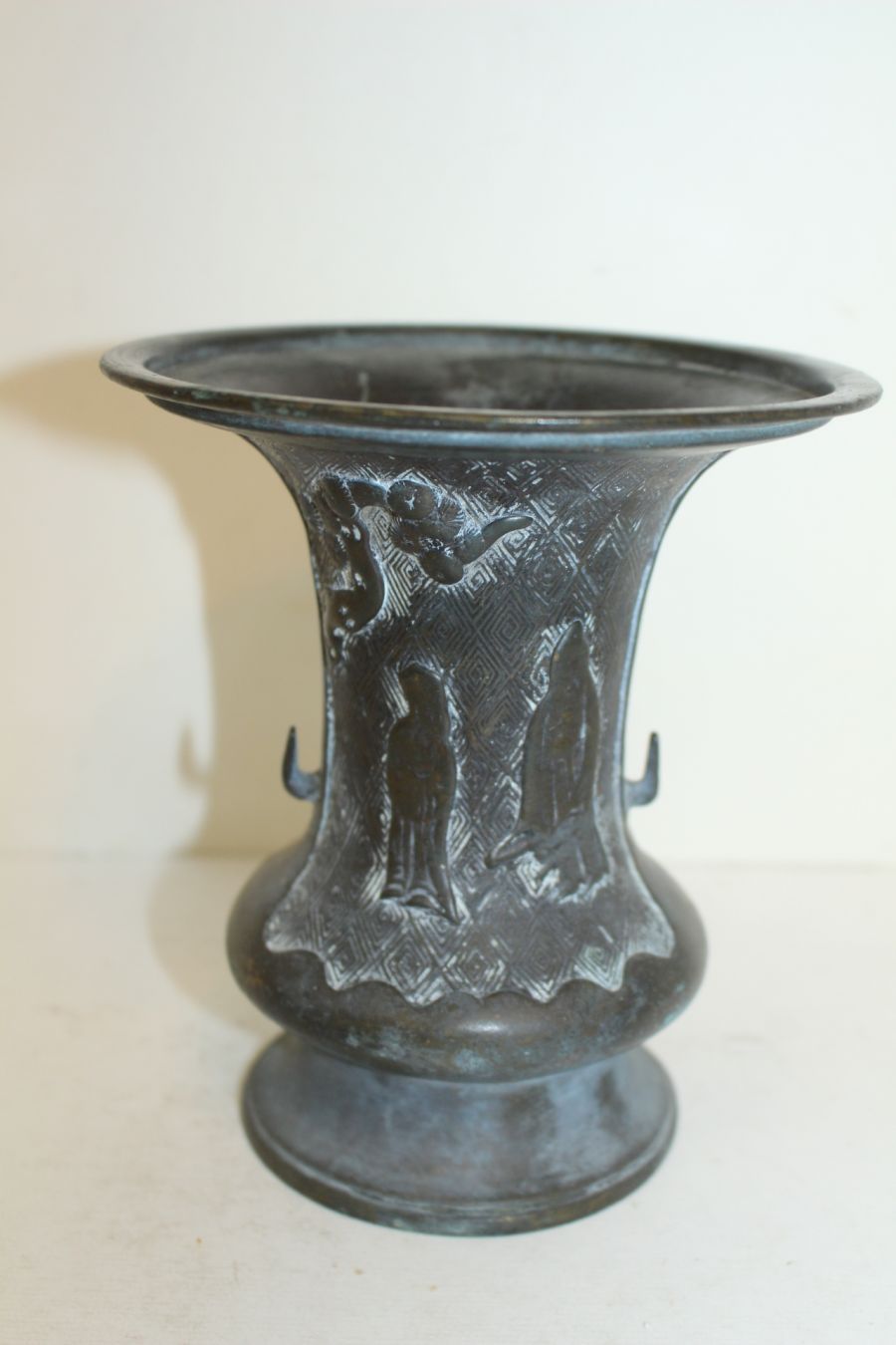 연대가좋은 청동으로된 양각신선문 화병 > 일본미술품