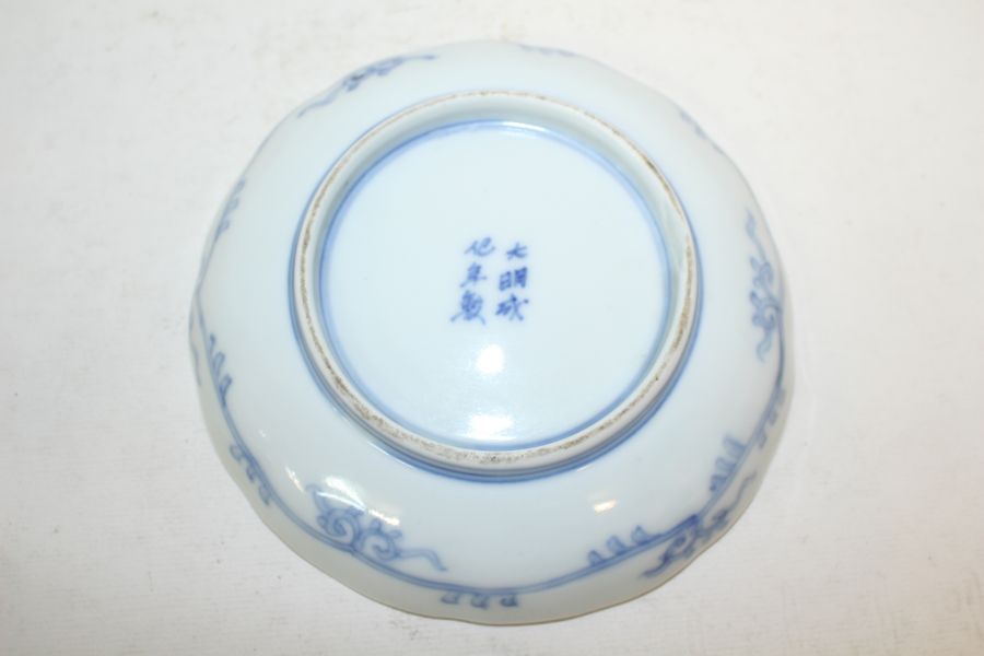 72-100년이상된 고이마리 대명성화년제명 청화백자진사금채인물문 화형완 > 일본미술품