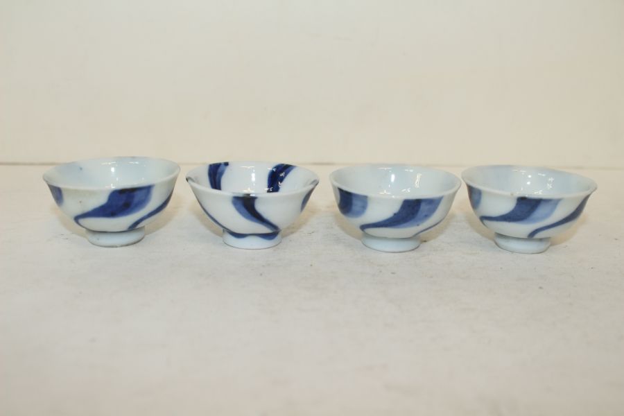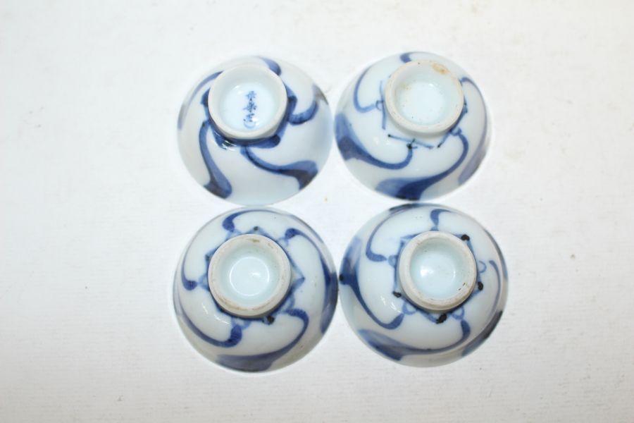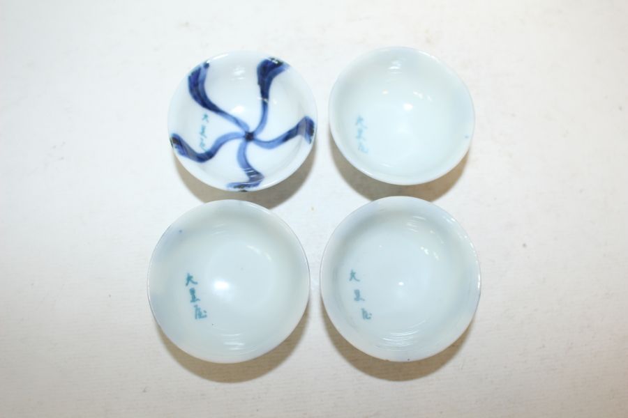 연대가좋은 청화백자 돌개문 잔 4점 > 일본미술품