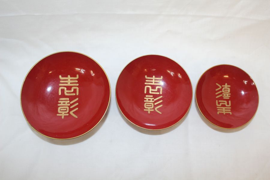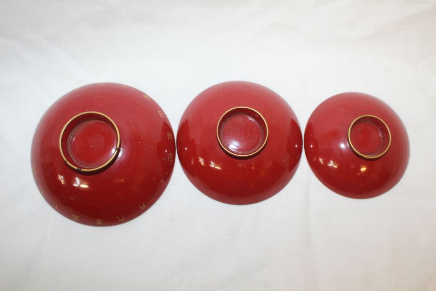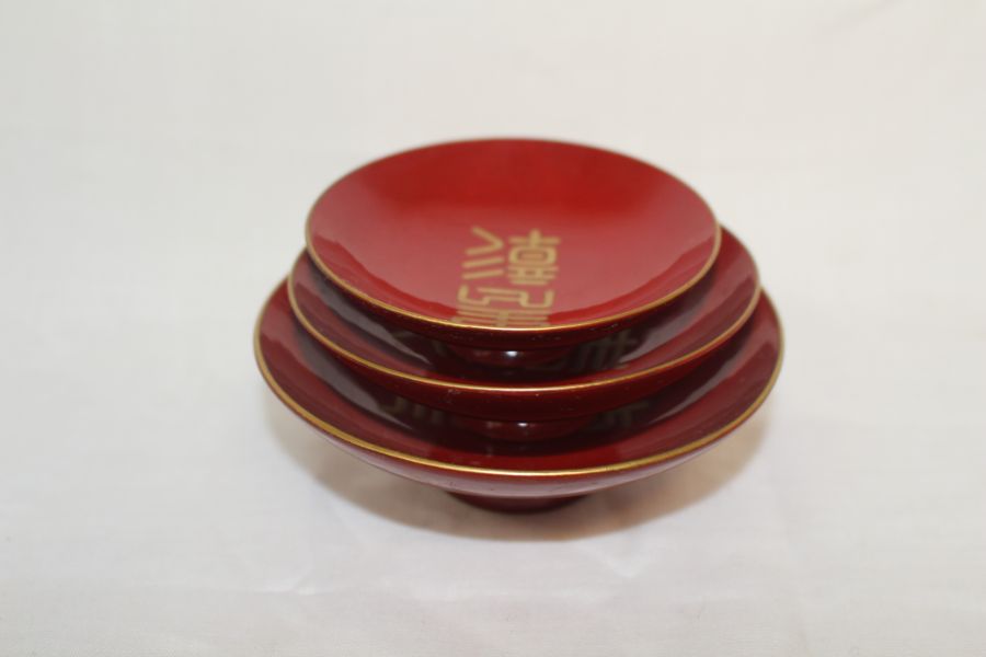 1940년 나무에 옷칠이된 잔 3점 > 일본미술품