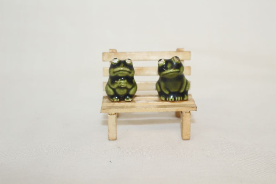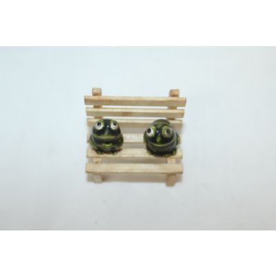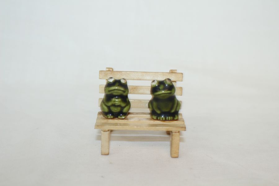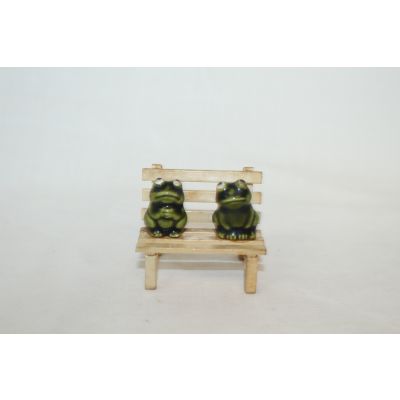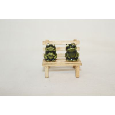 • 소형크기의 나무의자에 청자 개구리 조각상