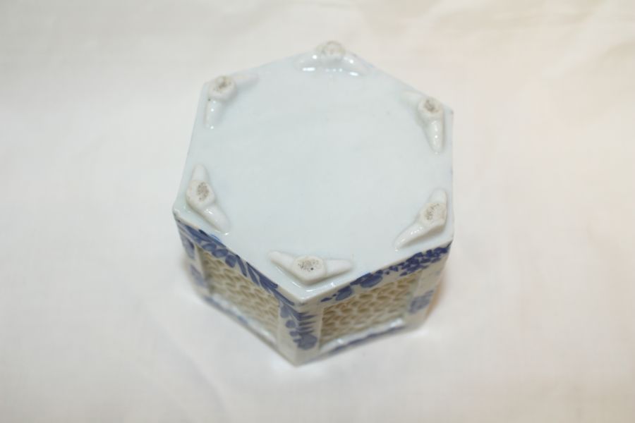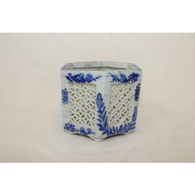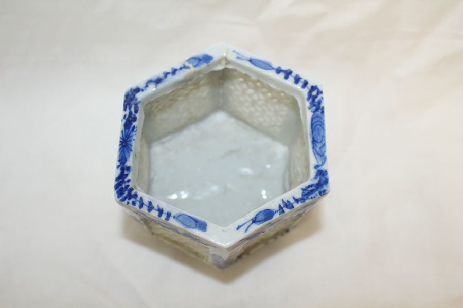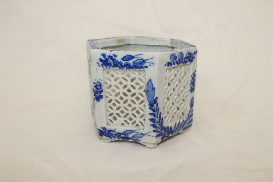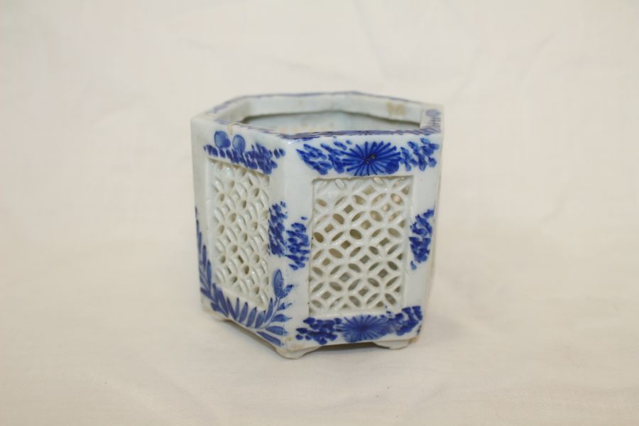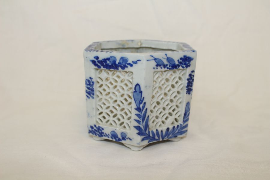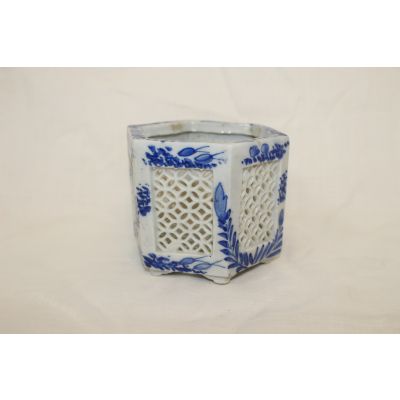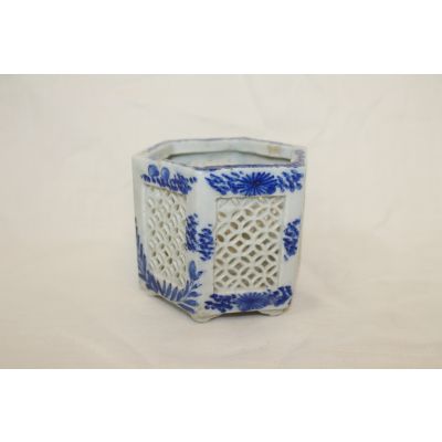 • 100년이상된 청화백자화문 투각육각향로