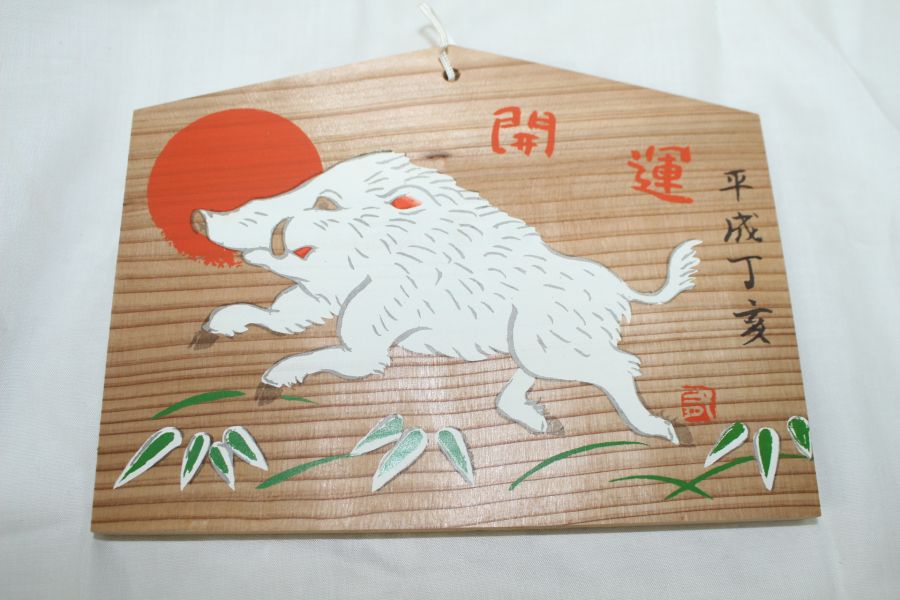 10-나무에 멧돼지그림 부적판 > 일본미술품