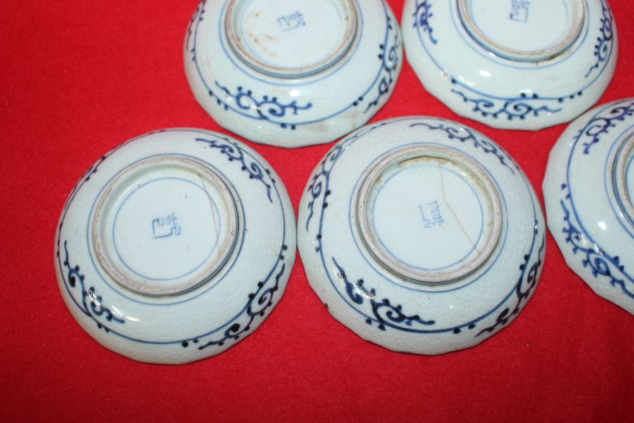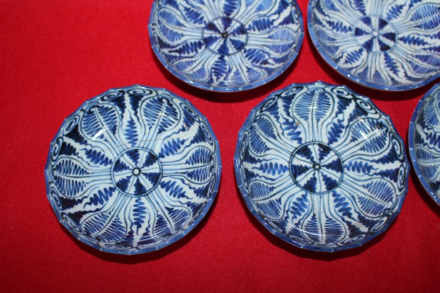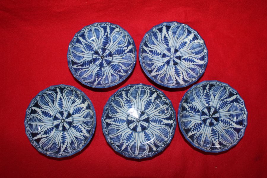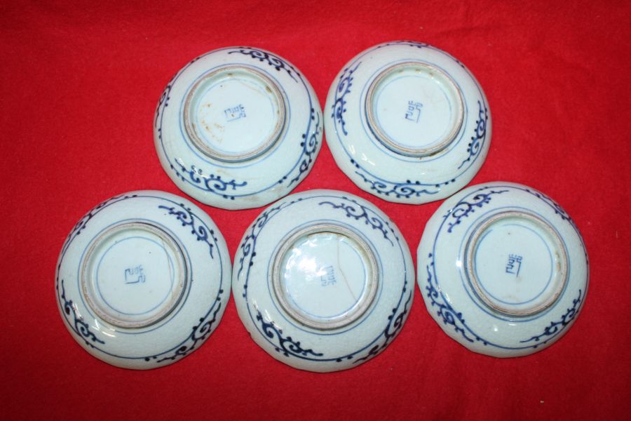 연대가좋은 고이마리 청화백자추상화문 화형완 5점 > 일본미술품