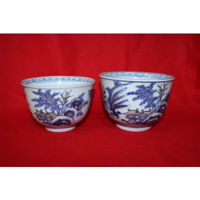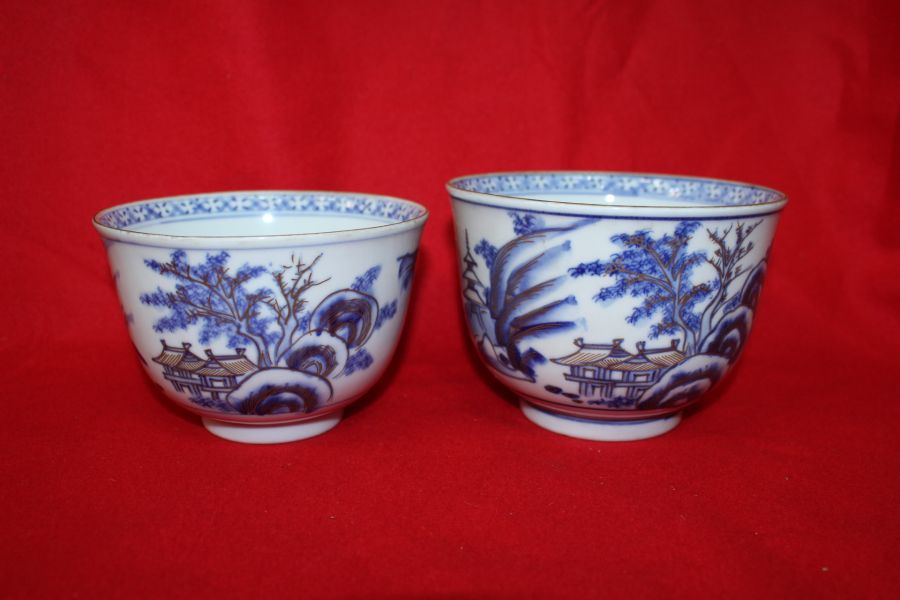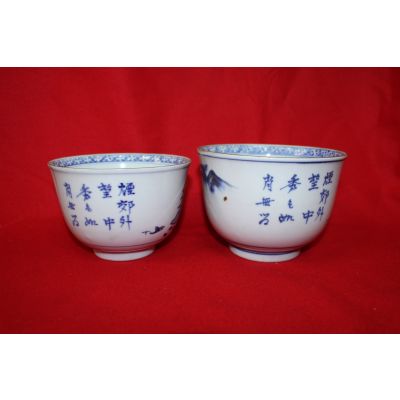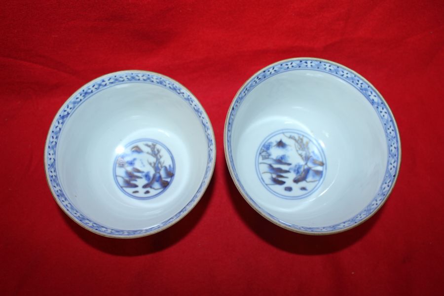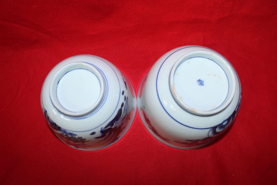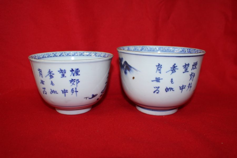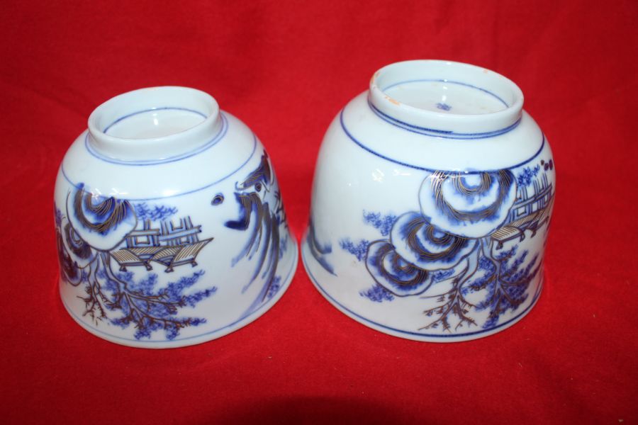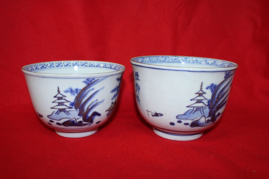 100년이상된 청화백자금채산수시문 평다완 2점 > 일본미술품