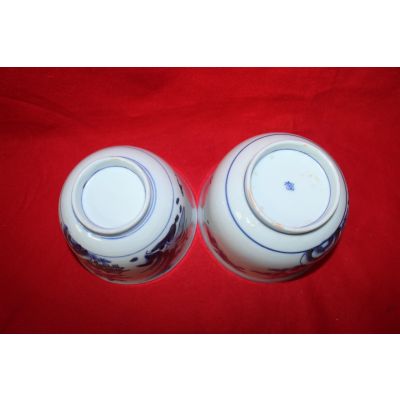 • 100년이상된 청화백자금채산수시문 평다완 2점