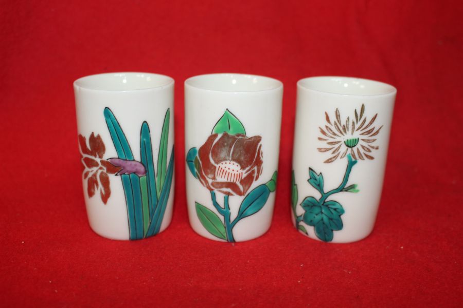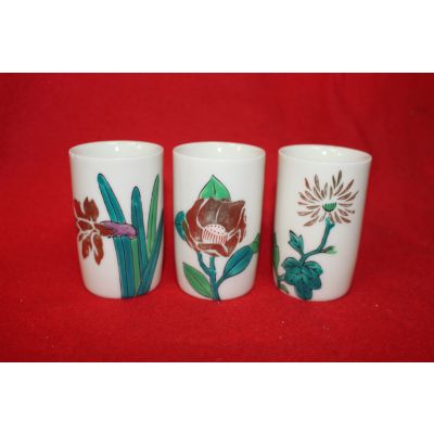 청화백자 금채화문잔 3점 > 일본미술품