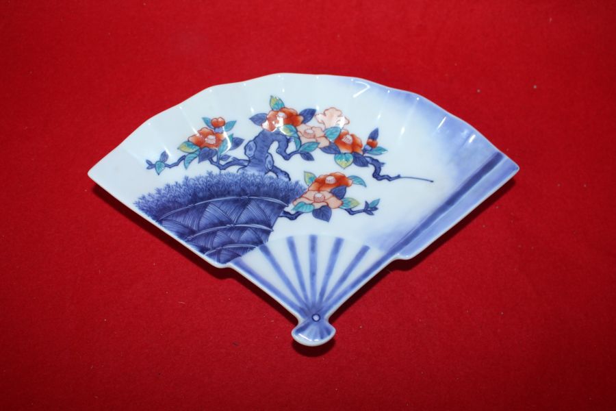 • 이마리 청화백자화문 부채모양 완